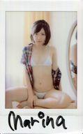 【中古】生写真(女性)/グラビアアイドル ☆平嶋真理奈/直筆サイン入り・膝上・衣装赤・白・チェック柄・水着・座り・左足曲げ/DVD「〜顔もアナルも美女宣言〜美女アナ*リスト」特典生チェキ