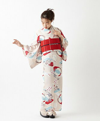 浴衣「猫トランプ」ふりふ×紫織庵 浴衣 単品 日本製 浴衣 ゆかた レディース 女性 ねこ ネコ 猫 トランプ まり 毬 鞠 総柄 和柄 和風 古典柄 レトロ モダン 大正ロマン かわいい 可愛い 大人 お洒落 華やか 白地 ねこ 白系 ふりふ 20代 30代 40代 大人 粋