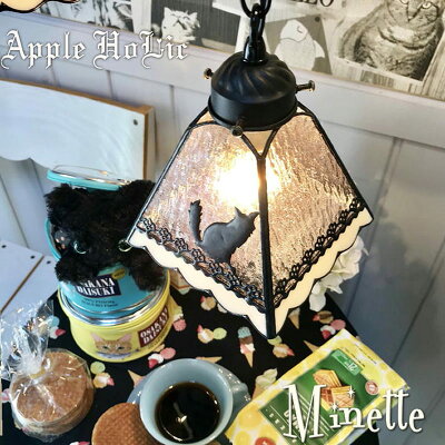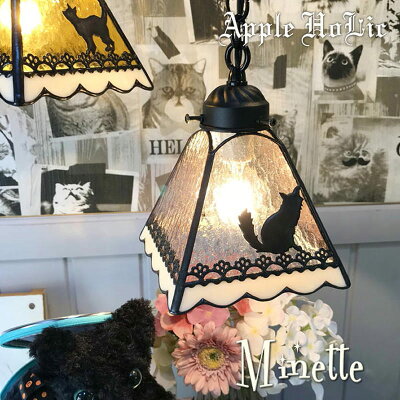 猫のペンダントライト【Minette・路地裏のミネット】LED対応 ステンドグラス ランプ ネコ 猫 雑貨