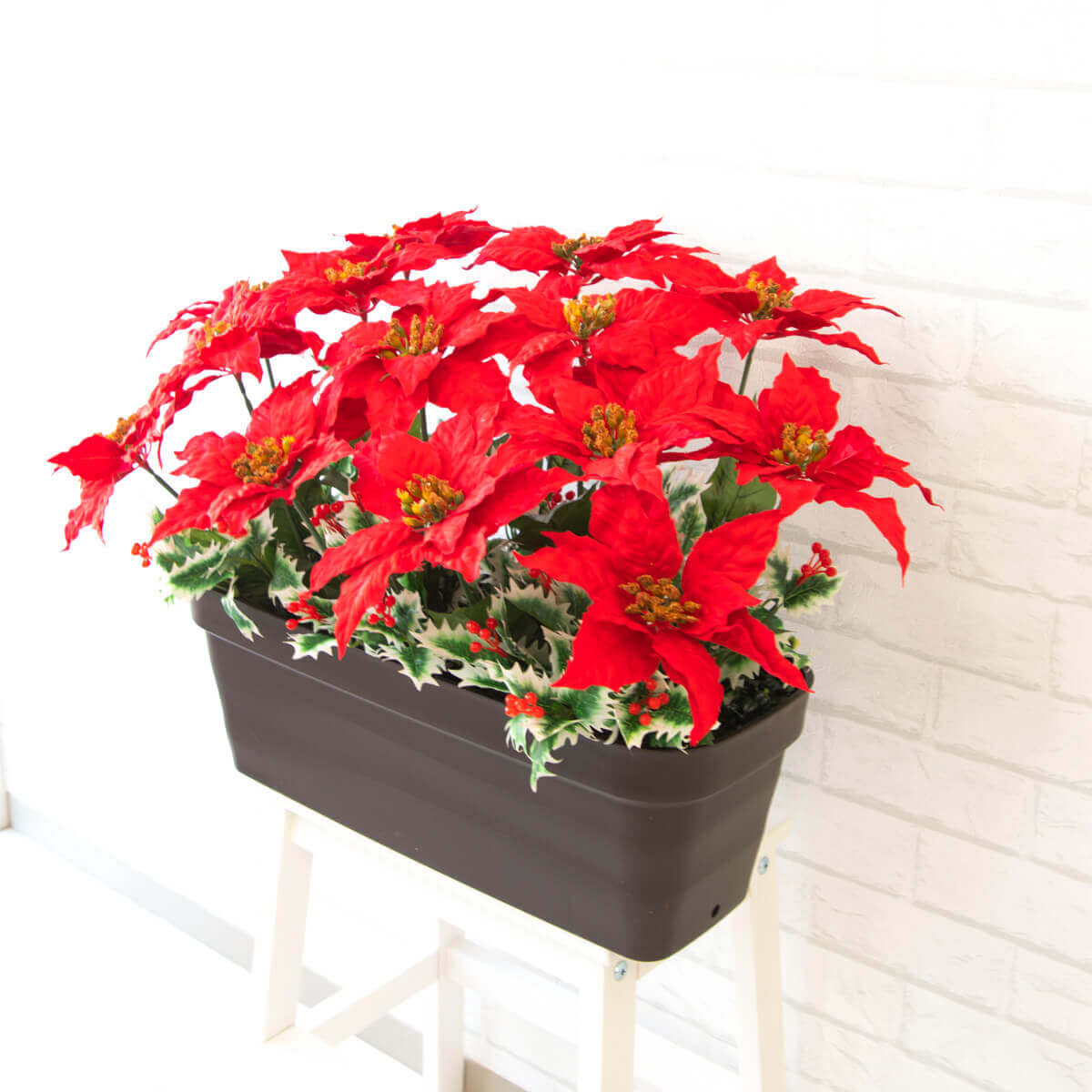 ポインセチアプランター クリスマスアレンジメント クリスマス装飾 クリスマスデコレーション クリスマス飾り 冬装飾 Christmas ディスプレイ アートフラワー 住宅展示場 モデルハウス ショールーム インテリア まとめ買い【PF309 造花プランター(ポインセチア)】