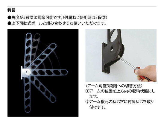 ※image photo 屋外物干 KS-DA500ABN シリーズ 【 特長 】 ●角度が5段階に調節可能です。