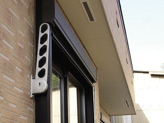 屋外物干の耐荷重に十分に耐えられる壁面及び支柱に取り付けてください。