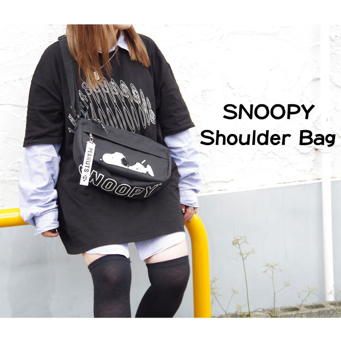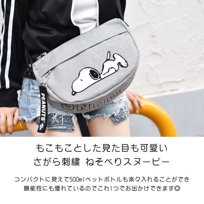 SNOOPY スヌーピー ねそべりスヌーピー ショルダーバッグ 斜め掛け サブバッグ 肩掛け ショルダー 刺繍 さがら刺繍 ナイロン キャラクター 学生 女の子 レディース メンズ オールシーズン ブラック グレー ネイビー SPR-889 SPR-890 SPR-891 【あす楽対応】