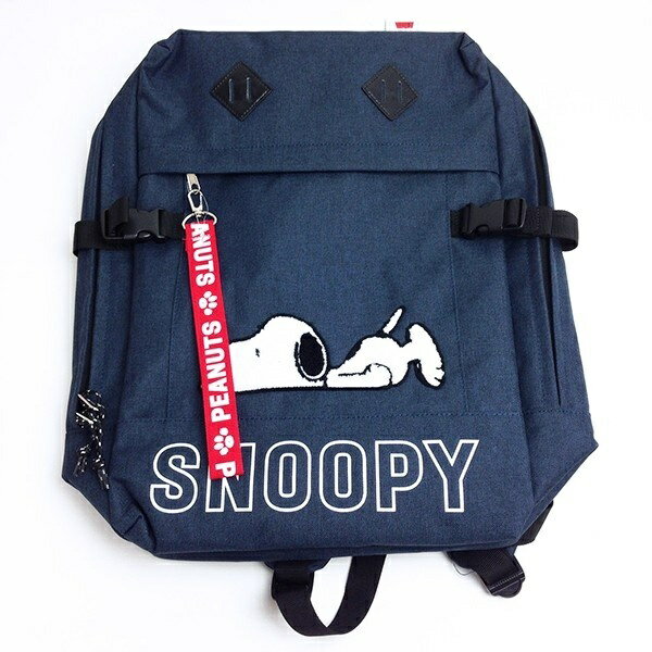 ピーナッツ スヌーピー スクエアリュック さがら刺繍 ねそべりスヌーピー ネイビー グッズ/パーフェクト・ワールド・トーキョー(Perfect World Tokyo)